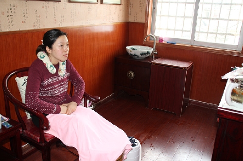 盤香熏香裊裊,玫瑰冰糖養(yǎng)生茶。三臺中藥熏足桶,配上古色古香的太師椅、靠墊、黃花梨木茶幾,邊熏足邊食生津止渴的話梅糖,隨時欣賞中醫(yī)養(yǎng)生宣傳視頻?;蚺坑诎状?,或放松癱坐,中藥熏足、耳穴壓豆、藥物罐等中醫(yī)特色護理技術(shù)好生伺候,享受之余又有強身健體、 祛濕排毒等養(yǎng)生療效。