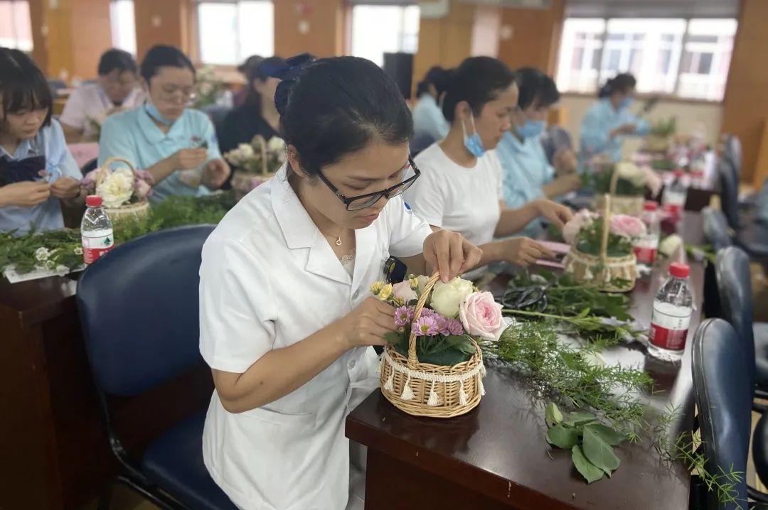 以花感人,以花喻人。在花卉的芳香和美妙中體會經(jīng)典的東西方文化,激發(fā)創(chuàng)造力和想象力。5月12日下午在多功能廳舉行感恩有你——護(hù)士節(jié)插花活動。