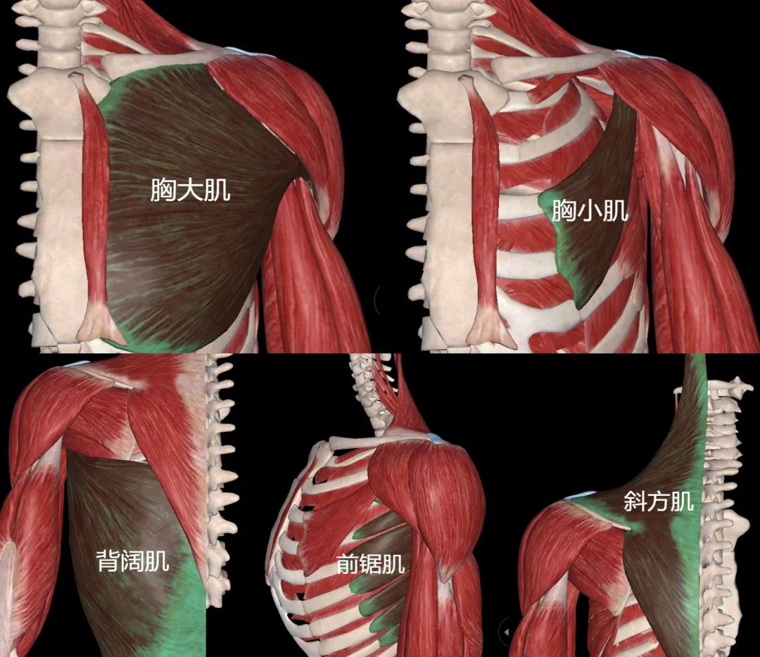 神經(jīng)肌肉再教育需要特別關(guān)注的肌肉包括:肩袖(特別是外肩袖——岡下肌和小圓肌)、背闊肌、前鋸肌、斜方肌各束(上/中/下)、胸大肌和胸小肌。并且,在肩關(guān)節(jié)活動(dòng)中肩胛骨的上旋、外旋和后仰所表現(xiàn)的方式和時(shí)機(jī)也同樣不能忽視。