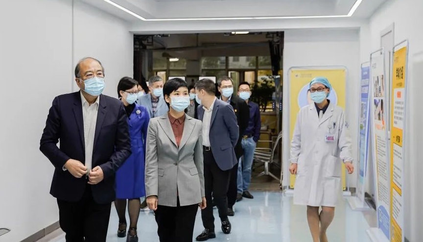 4月28日下午,臺州市副市長章月燕一行到臺州市中醫(yī)院調(diào)研。市衛(wèi)生健康委黨委書記、主任阮聰穎、市衛(wèi)生健康委副主任鄭貞蒼等領(lǐng)導(dǎo)一同調(diào)研。我院黨政領(lǐng)導(dǎo)班子陪同調(diào)研。章月燕一行先后走訪了醫(yī)院門診大樓、健康管理中心、治未病中心(景福華堂)、中藥科(景福本草)及發(fā)熱門診等地,聽取醫(yī)院工作匯報,充分了解醫(yī)院整體布局及醫(yī)院發(fā)展成果。章月燕充分肯定醫(yī)院近年來的發(fā)展成果,贊賞市中醫(yī)院在新冠疫情防控中發(fā)揮的積極作用。特別是中醫(yī)藥特色服務(wù)方面,市中醫(yī)院的發(fā)展起到很好的引領(lǐng)帶頭作用。她表示,市中醫(yī)院要繼續(xù)提高站位,強(qiáng)化使命擔(dān)當(dāng),認(rèn)真貫徹落實(shí)習(xí)近平總書記關(guān)于中醫(yī)藥工作的重要論述以及省委省政府《關(guān)于促進(jìn)中醫(yī)藥傳承創(chuàng)新發(fā)展的意見》等文件精神,緊緊圍繞健康臺州建設(shè),守住中醫(yī)初心,傳承精華,奮力推動我市中醫(yī)藥事業(yè)高質(zhì)量發(fā)展。