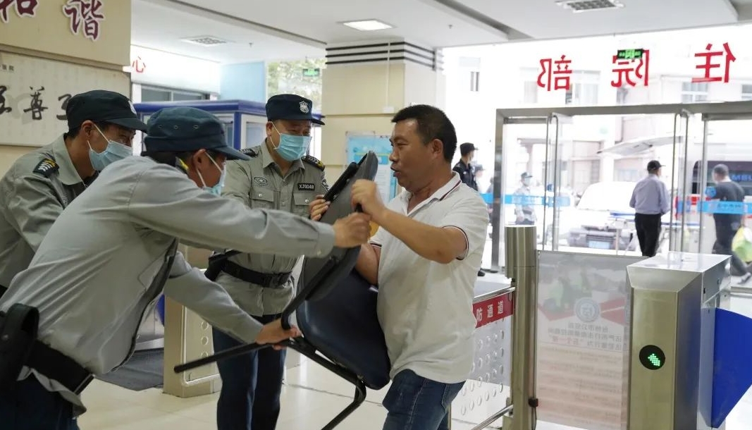為加強(qiáng)建黨100周年安保工作,本著迅速、高效處置醫(yī)院暴恐及暴力傷醫(yī)事件,強(qiáng)化演練形成實(shí)戰(zhàn)能力,最大限度地提升警醫(yī)聯(lián)勤,醫(yī)護(hù)、保衛(wèi)、警方協(xié)同處置突發(fā)性事件的能力和經(jīng)驗(yàn)。5月11日下午臺州市中醫(yī)院開展反恐防暴及暴力傷醫(yī)事件處置演練,演練由白云派出所副所長李慶和醫(yī)院副院長鮑云生擔(dān)任組長,白云派出所部分民警和保安部全體人員參加。演練開始前派出所民警李靈光、椒江巡特警民警邱偉杰來院對保安部全體成員進(jìn)行知識及實(shí)戰(zhàn)培訓(xùn)。此次演練部署及職責(zé)任務(wù)根據(jù)事件進(jìn)展情況,共分五個階段演練:一、突發(fā)暴力事件;二、先期處置;三、防暴處置;四、警方處置;五、領(lǐng)導(dǎo)點(diǎn)評。演練中,一患者家屬(醫(yī)院保安扮演)未戴口罩和未取得探視資格,且態(tài)度惡劣,要求來住院部探望病人,被保安攔下并僵持為模擬警情,醫(yī)院保安部按照相關(guān)應(yīng)急預(yù)案,緊張有序的使用警報器報警,再用防護(hù)器械保護(hù)醫(yī)院重點(diǎn)部位,及時疏散醫(yī)護(hù)人員和群眾,最后成功牽制住“歹徒”并及時報警。民警接警后,迅速出警,出警民警采取有效的防暴措施及時制服“犯罪嫌疑人”帶離現(xiàn)場。在醫(yī)院領(lǐng)導(dǎo)的大力支持和保安部人員及白云派出所等各部門的全力配合下,最后演練任務(wù)圓滿完成。家是最小的國,國是千萬家,維護(hù)國家安全不僅關(guān)乎國家興亡,更是每個公民切身利益的重要保障。通過此次演練,不僅檢驗(yàn)了醫(yī)院保安部及職工的保衛(wèi)能力,還有效提高了我院保安部人員應(yīng)對突發(fā)事件應(yīng)急處置的實(shí)戰(zhàn)能力和協(xié)同作戰(zhàn)能力。